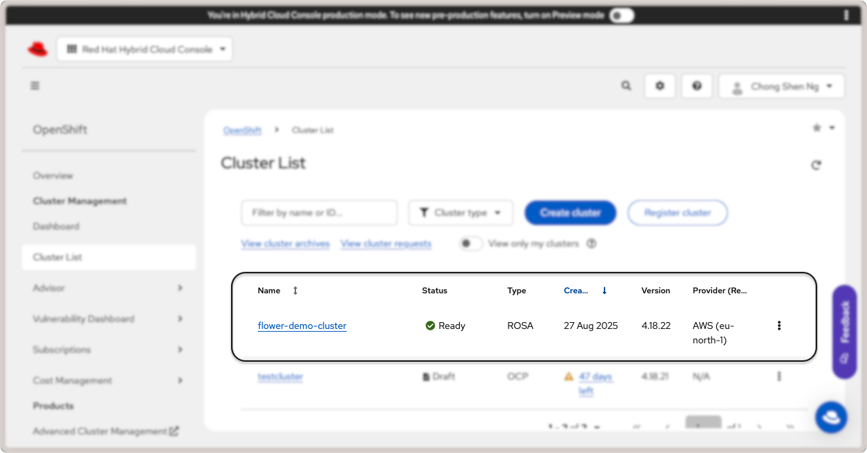 Start by logging in to your Red Hat Hybrid Cloud Console and click on OpenShift link in the Red Hat