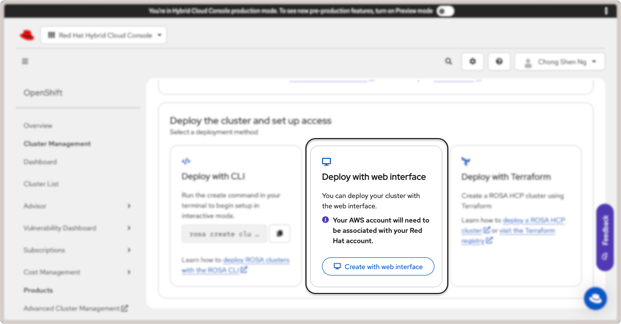 With the AWS and ROSA pre-requisites completed, you are now ready to deploy a cluster.