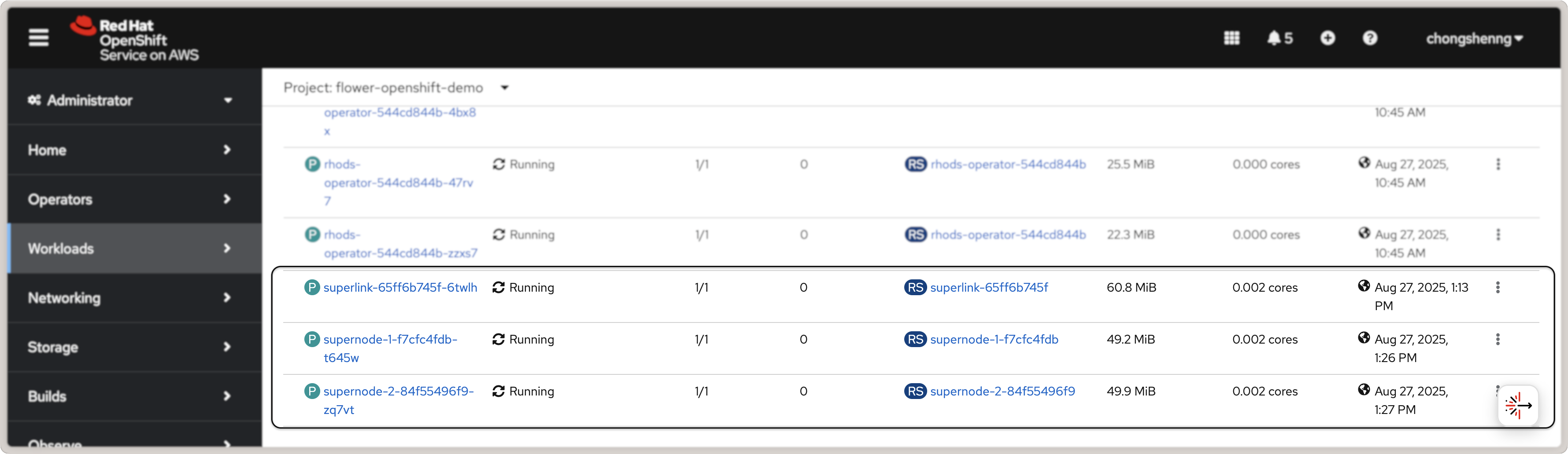 the deployed SuperLink and SuperNode pods. Given that we deployed the OpenShift AI