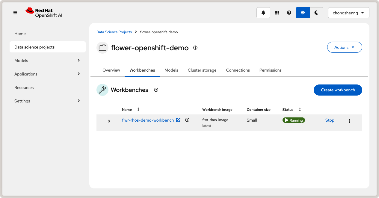 flwr-rhos-demo-workbench. Under Workbench image > Image selection, select