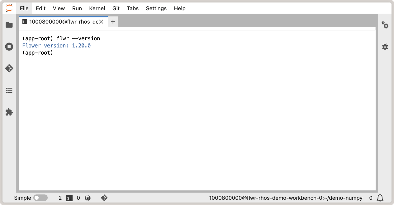 Verify Flower installation in OpenShift AI workbench.¶